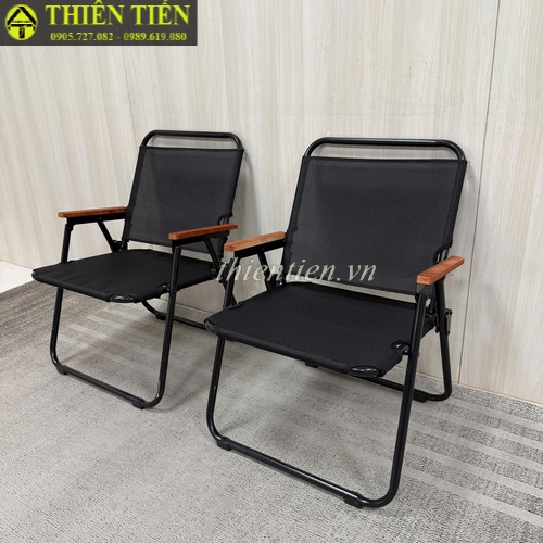 66-Ghế camping KHUNG TRÒN vải ĐEN tay đậm (Hàng MỚI 100%)