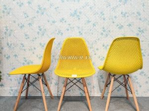 Tên sản phẩm: Ghế nhựa lưới chân gỗ (VÀNG)