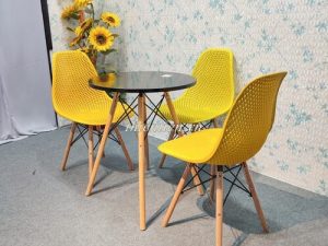 05 – Ghế nhựa lưới chân gỗ (VÀNG) (Hàng mới 100%)