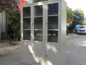 Tủ có khóa đầy đủ, thích hợp lưu trữ hồ sơ, tài liệu văn phòng.