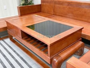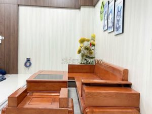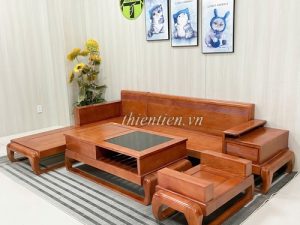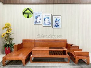 04- Salon góc L chân cong NÂU ĐỎ góc PHẢI (Hàng MỚI 100%)