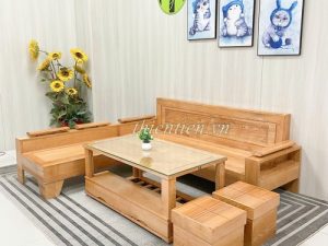 04-Salon góc L sồi vàng tựa liền