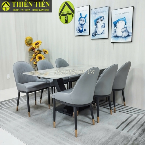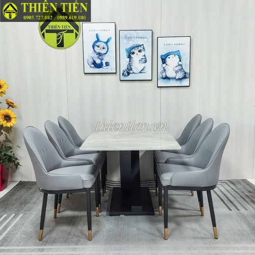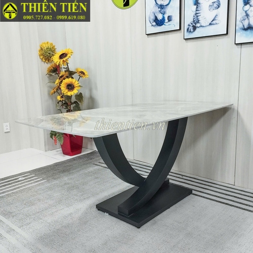101- Bàn ăn chân bát (chân U) 1m6 mặt đá xanh ý (Hàng MỚI 100%)