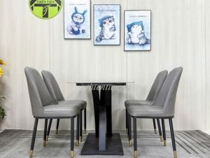 101- Bàn ăn chân CHANEL 1m2 mặt đá trắng (Hàng MỚI 100%)