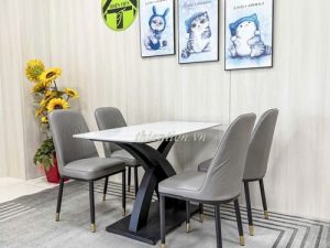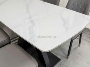101- Bàn ăn chân X KÉP ( chân đao) 1m2 mặt đá trắng (Hàng MỚI 100%)