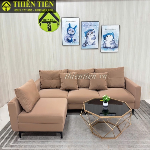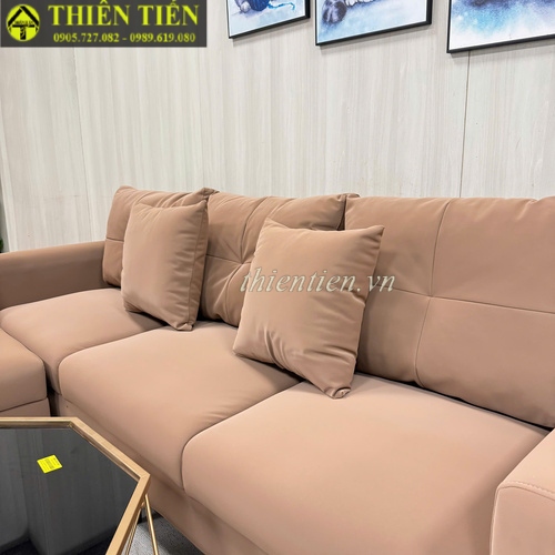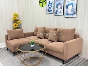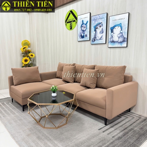 107- Sofa góc L gối nhấn + tựa NÂU (Hàng MỚI 100%)