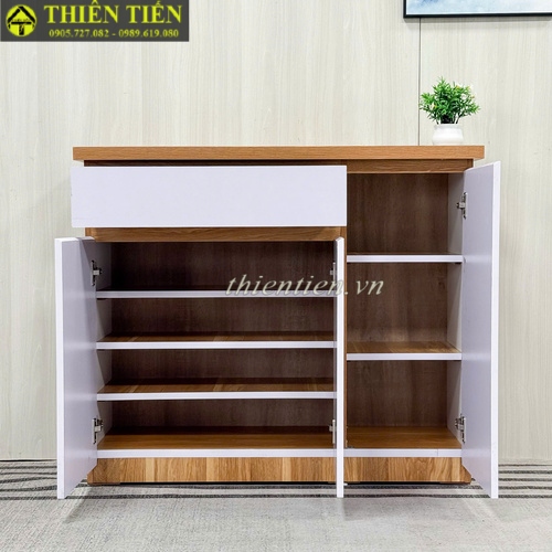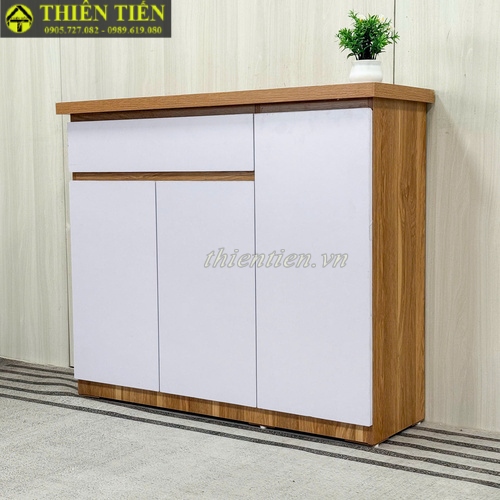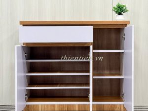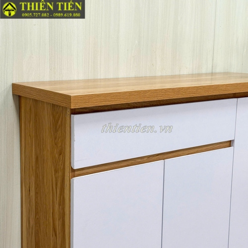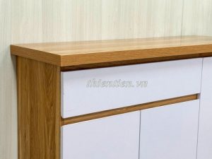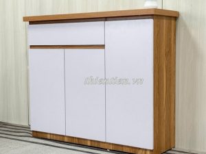 Tủ có thiết kế hiện đại, sang trọng. Có ngắn kéo để chìa khóa tiện lợi. Vừa sử dụng làm tủ giày dép vừa kết hợp làm tủ kệ để đồ trang trí cho gia đình.