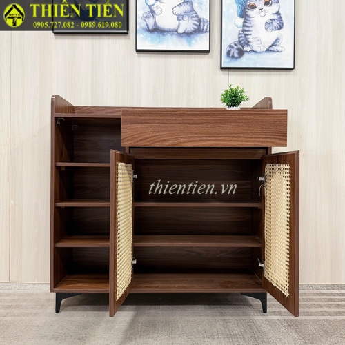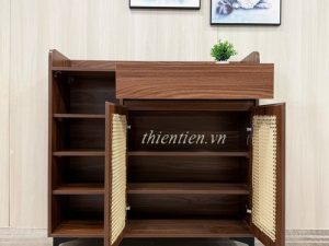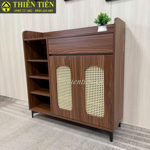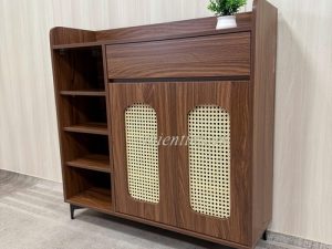 108-Tủ giày mây 2 cánh + 1 kệ nâu CHÂN SẮT