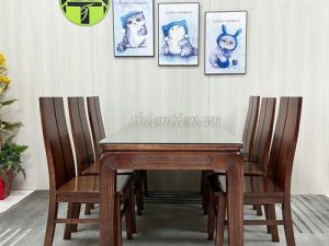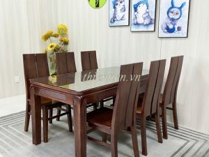 14- Bộ bàn ăn 6 ghế sồi mặt gỗ mặt gỗ kèm KÍNH