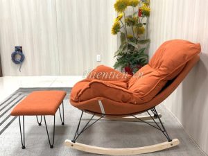 14-Ghế bập bênh chân gỗ nỉ cam (Hàng MỚI 100%)