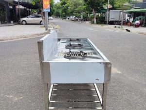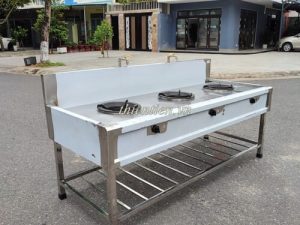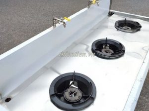 Trọn bộ có 3 bếp, 2 vòi xả và rãnh nước dễ dàng vệ sinh bếp.