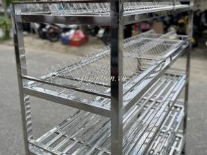 Thiết kế tiện lợi có 3 tầng dưới để chén tô, 2 tầng trên để dĩa, phù hợp cho quán ăn, nhà hàng.