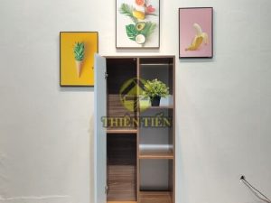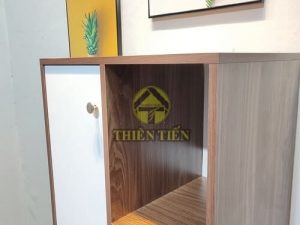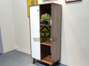 Thiết kế 1 bên ngăn tầng, có bên có cửa đóng. Chất liệu: Gỗ công nghiệp phủ melamine, chân gỗ sồi tự nhiên