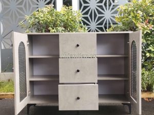 Chất liệu: gỗ công nghiệp .Mặt trước có lưới nhựa đang giả mây .