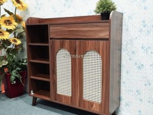 Tên sản phẩm: Tủ giày 2 cánh mây + 1 kệ (1m) NÂU đậm