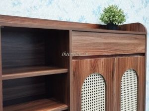 Chất liệu: gỗ công nghiệp phủ mealine. Mặt trước có lưới nhựa đang giả mây .