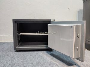 Hệ thống khoá chốt an toàn, gồm 4 chốt ( 2 chốt chính và 2 chốt phụ) ăn sau vào trong lòng két chắc chắn. Gồm 1 khoá 3 mã và 1 bộ khoá chìa 4 cạnh an toàn