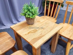Chất liệu: mặt gỗ cao su ghép, chân gỗ thông