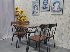 Chất liệu: chân sắt, mặt gỗ cao su