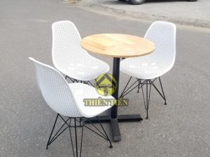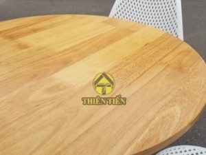 Chất liệu: chân trụ sắt, mặt gỗ cao su ghép