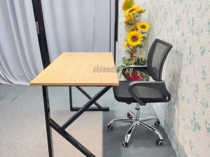 Chất liệu: mặt bàn gỗ MDF. chân sắt dày 1ly, hàn chân sắt cố định chắc chắn.