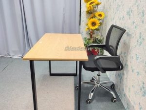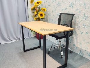 Chất liệu: mặt bàn gỗ MDF. chân sắt dày 1ly, hàn chân sắt cố định chắc chắn.