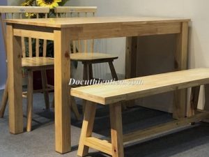 Chất liệu: gỗ cao su ghép, chân gỗ thông