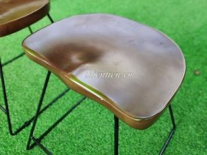 Tên sản phẩm:Ghế đẩu gỗ chân sắt mặt cong NÂU