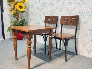Chất liệu: Khung sắt, tựa lưng và Mặt ngồi gỗ cao su.