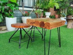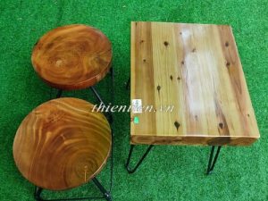 Chất liệu: Gỗ xà cừ nguyên tấm, chân sắt