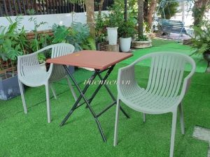 Ghế có tựa lưng, phần tựa lưng và bề mặt ngồi được thiết kế dạng lưới mây sẽ đảm bảo độ thông thoáng khi ngồi những vẫn dễ lau chùi