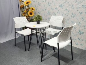 Chất liệu: đế ngồi và lưng dựa bằng nhựa, chân bằng sắt chịu lực