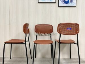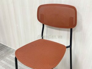 46- Ghế cf nhựa lưng lưới NÂU chân sắt 2740 (Hàng MỚI 100%)