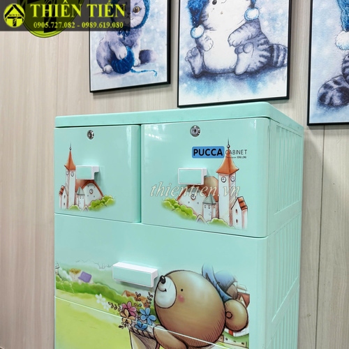 46- Tủ nhựa Pucca hình GẤU XANH 5 tầng Song Long