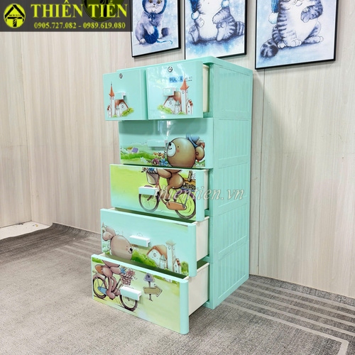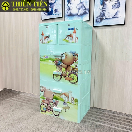 46- Tủ nhựa Pucca hình GẤU XANH 5 tầng Song Long (Hàng MỚI 100%)