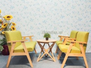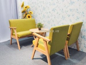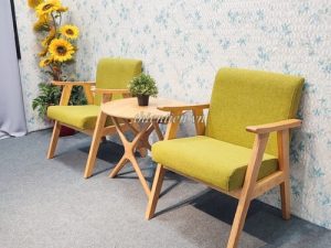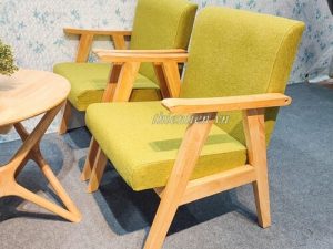 Tên sản phẩm: Ghế sofa đơn VÀNG nệm XANH LÁ chân dẹp