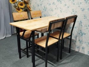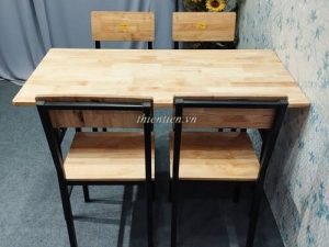 Chất liệu: mặt bàn gỗ cao su ghép.