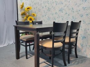 Chất liệu: gỗ cao su, nệm ngồi simili.