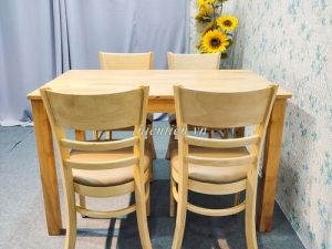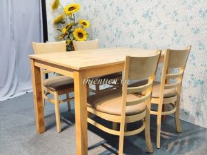 Chất liệu: gỗ cao su, nệm ngồi simili.
