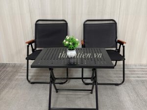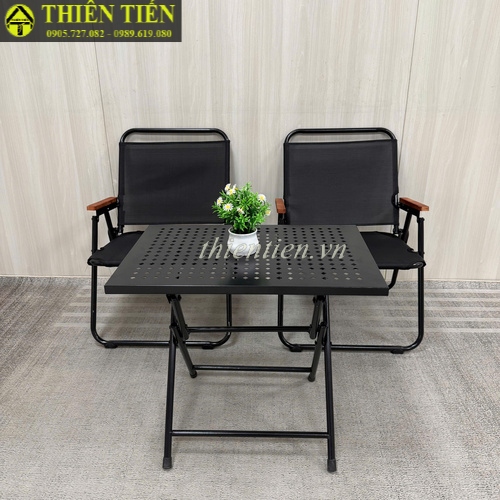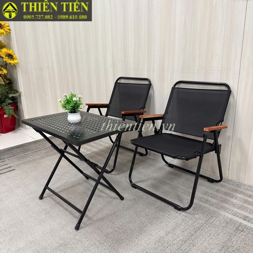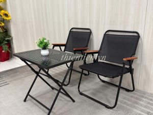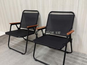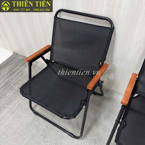 66- Ghế camping khung TRÒN LƯỚI ĐEN tay ĐẬM