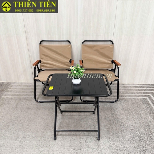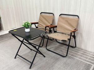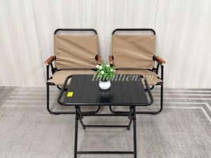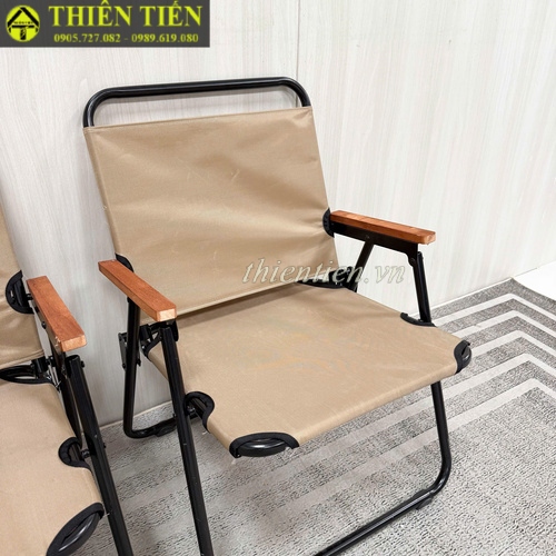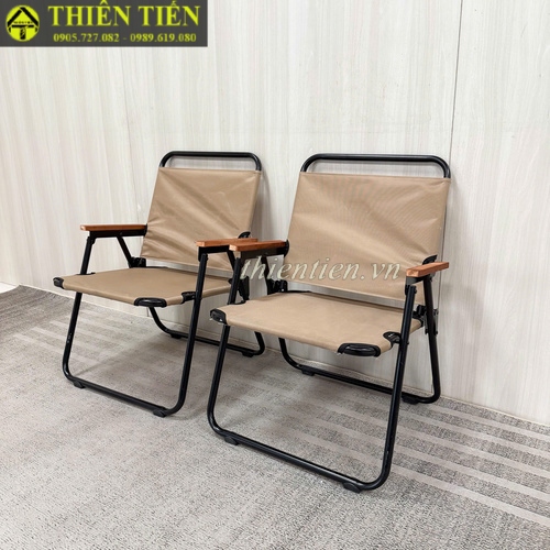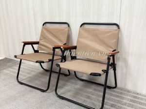 66-Ghế camping khung tròn vải nâu tay đậm