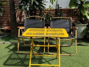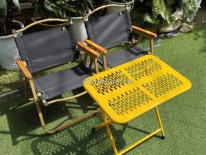 Tên sản phẩm: Ghế camping vải ĐEN khung VÀNG tay đậm