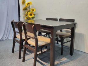 Tên sản phẩm: Bàn cabin gỗ cao su nâu chân gỗ thông 1m2