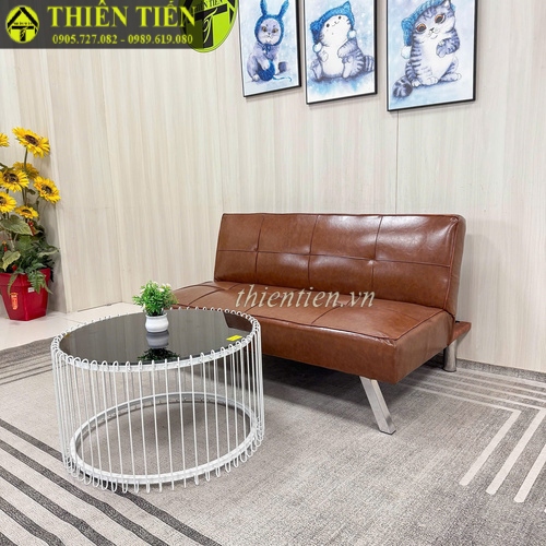 73-Sofa bed da nâu loang mới 1m4 (Hàng MỚI 100%)