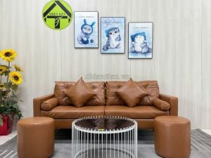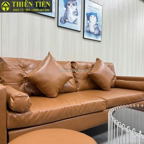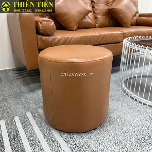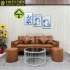 Tên sản phẩm: Sofa DA NÂU kèm gối chân gỗ + 2 ĐÔN TRÒN