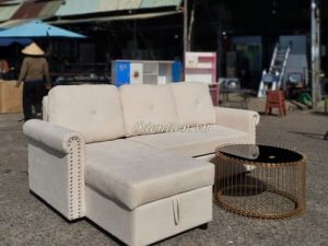 73-Sofa giường góc L KEM (Hàng MỚI 100%)
