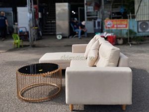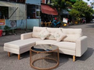 Tên sản phẩm: Sofa góc L chân gỗ kem
