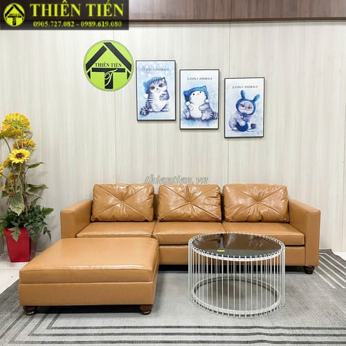 73- Sofa góc L da bò nhạt 2m2 (Hàng MỚI 100%)