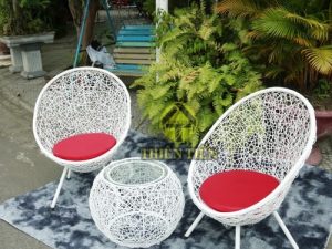 Tên sản phẩm: Bàn và ghế nhựa đan hình trứng trắng