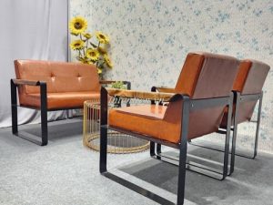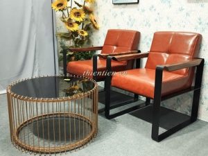 Chất liệu: chân sắt, nệm da bò